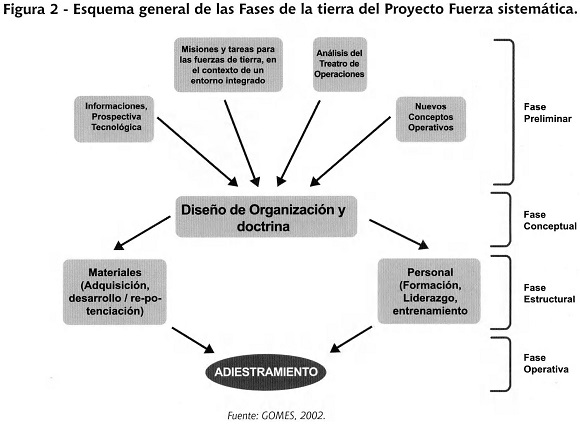 De esta forma, el Estado brasileño fomenta el desarrollo tecnológico centrado en el sector de defensa. Este desarrollo tecnológico requerido por el proceso de Transformación de la Fuerza Terrestre se ¡niela por el establecimiento de paradigmas tecnológicos que guíen los esfuerzos en Investigación, representados por trayectorias tecnológicas.