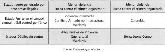 En conclusión, puede decirse que es notable que un régimen político que tenga un control de sus medios y relaciones de producción en un contexto democrático, tiende a generar atmósferas menos violentas que cualquier otro tipo de régimen. Del mismo modo, debe señalarse que el control de rentas y los modos de producción del capital, son elementos que tienen una gran influencia sobre la capacidad coercitiva del Estado (capacidad de control de los centros y las periferias) y a su vez, sobre la naturaleza violenta. En consecuencia, las variables capital, control, tipo de régimen, ilegalidad y violencia deben ser profundamente estudiadas en sus complejas interacciones, porque esto ofrecería nuevas perspectivas de análisis sobre la gobernabilidad y la viabilidad de los Estados en condiciones adversas.