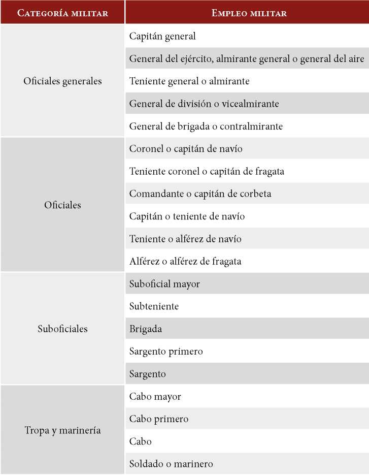 Tabla 3. Categorías y empleos militares