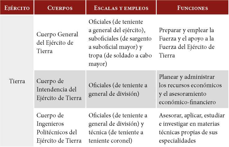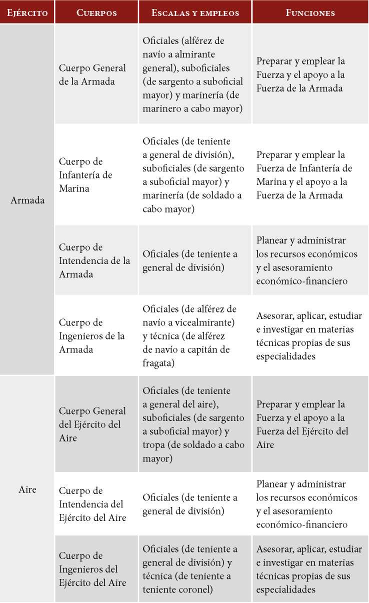 Tabla 4. Cuerpos y escalas militares