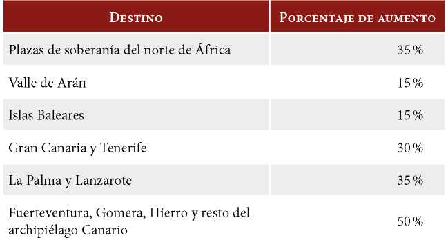 Indemnización por residencia (art. 4.2 RRPFAS): El RRPFAS solo dispone que se la percibirá conforme a lo estipulado en la legislación específica en esta materia, y lo cierto es que la legislación varía dependiendo de la eventualidad de la residencia. En caso de que se trate de traslados eventuales por comisiones de servicio circunstanciales, se habrá de estar a lo dispuesto en el Real Decreto 462/2002, de 24 de mayo, sobre indemnizaciones por razón de servicio, cuyo art. 16.1 fija un límite máximo del 80 % del importe de las dietas que corresponda al militar por su traslado. Por otra parte, en caso de traslado definitivo, es de aplicación el preconstitucional, pero todavía vigente, Decreto 361/1971, de 18 de febrero, sobre indemnizaciones por residencia, cuyo art. 2 dispone que la indemnización se percibirá en la cuantía que resulte de aplicar a los sueldos (sin trienios) determinados porcentajes, en función del destino asignado, como se muestra en la tabla 8.