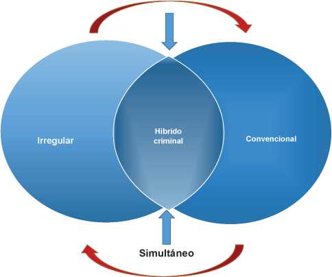 [...] por la plena integración en tiempo y espacio de procedimientos típicamente convencionales con tácticas propias de la guerra irregular (desde las clásicas emboscadas o acciones de propaganda, agitación e insurgencia hasta actividades de guerra informativa, guerra legal o ciberguerra), mezcladas éstas últimas con actos terroristas y conexiones con el crimen organizado para la obtención de apoyos y asistencia de todo tipo. (Colom, 2012, p. 9)