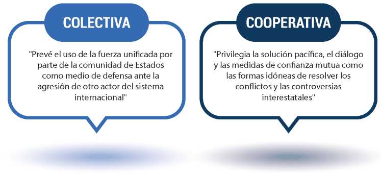 A partir de esta definición, se hace necesario llevar a cabo acuerdos entre los Estados para lograr un acercamiento y consenso en relación con los asuntos de seguridad para la generación de confianza mutua; por ello, es fundamental que este no solo se centre en enfrentar amenazas, sino en prevenir su aparición (Serbin Pont, 2018). Es preciso puntualizar la diferencia existente con la dimensión colectiva de la seguridad: