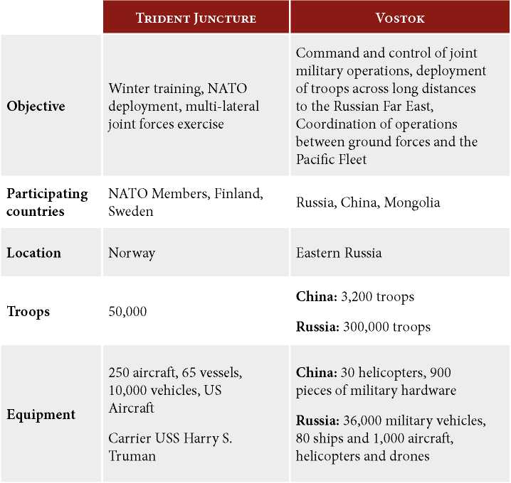 Table 1. Trident Juncture-18 vs Vostok-18. 2018