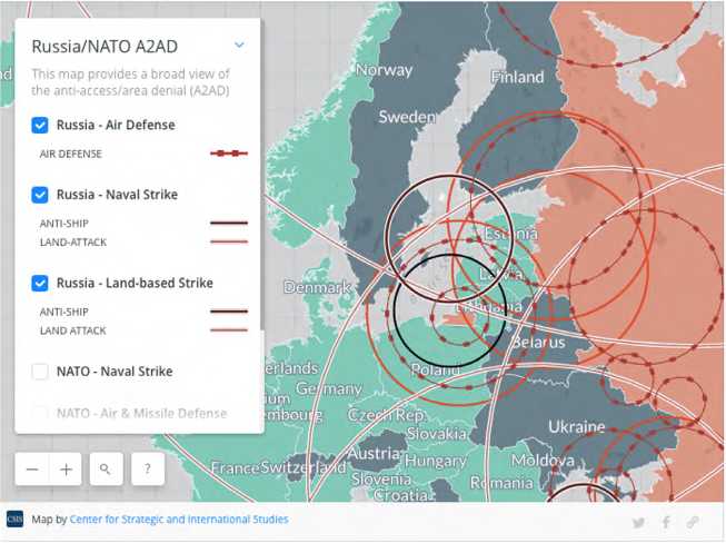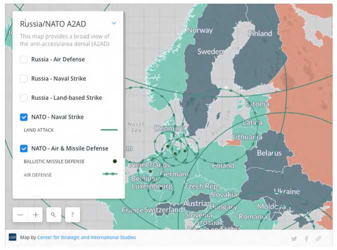 Gramer, R. (2017). This Interactive Map Shows the High Stakes Missile Stand-Off Between NATO and Russia. Foreign policy. Retrieved from https://foreignpolicy.com/2017/01/12/nato-russia-missile-defense-stand-off-deterrence-anti-access-ar-ea-denial/
