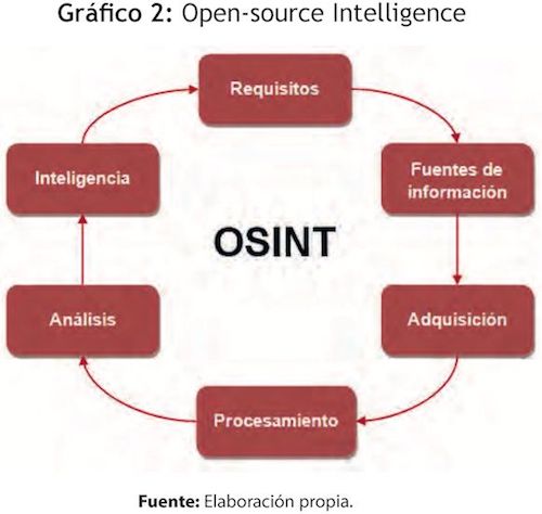 Por su parte, OSINT acrónimo derivado de su nombre en inglés Open-source Intelligence27 en los últimos años, a causa del desarrollo tecnológico en la era de la información, la inteligencia OSINT amplía su rango de acción a una clase de Inteligencia que tiene por objeto la realización de productos de valor añadido a partir de información procedente igualmente de fuentes abiertas como las descritas, y particularmente las fuentes abiertas residenciadas en páginas web, contribuyendo así a ampliar el rango de necesidades actuales de información, como producto de inteligencia, que en su defecto, o sin dedicarle la atención oportuna, esta corre el riesgo de estar permanentemente desactualizada.