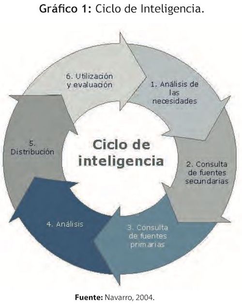 El ciclo de inteligencia representa un proceso que consta de varias fases denominadas indistintamente por autores u organizaciones, distinguiéndose según Vignettes (2010), en las seis fases siguientes: