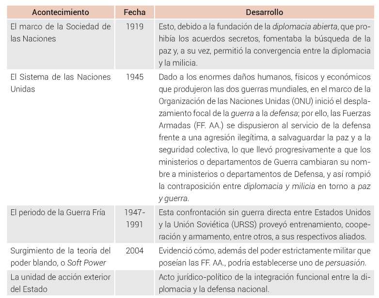 Tabla 1. Desarrollo histórico del concepto de diplomacia de defensa