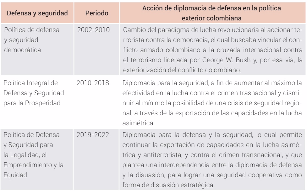 Fuente: elaboración propia, con base en los conceptos de Castro (2019), Tickner y Pardo (2003), Tokatlian (2010) y el Ministerio de Defensa Nacional de Colombia (2011).