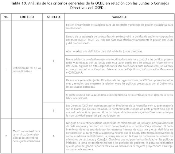 Frente al análisis realizado se puede afirmar que, a pesar de los enormes avances que ha efectuado el GSED frente a su estructuración, aún presenta debilidades en relación con los estándares internacionales (lineamientos de la OCDE). Se observa que el GSED aún no cumple completamente con los criterios definidos para Juntas y Consejos Directivos.