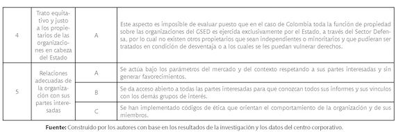 Por ahora se puede afirmar que actualmente el Estado colombiano aún no presenta trascendentales avances en estos temas, sobre todo en lo que concierne a las prácticas de gobierno corporativo en las organizaciones públicas. No obstante, en el sector defensa se encuentra un caso interesante en materia de gobierno corporativo dados los avances que ha venido mostrando, sin que ello quiera decir que no existan limitantes al respecto. Este caso está referido al Grupo Social y Empresarial de la Defensa- GSED.