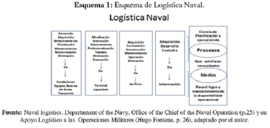 A partir de la Logística Pura o Teórica se presentan diversos conceptos como elementos clave que han venido evolucionado en el tiempo y las circunstancias, así mismo la incidencia que ha tenido las diferentes disciplinas y las ciencias dando mayor certeza a la definición; la trascendencia en la praxis representada en la Logística Operativa, las formas en la cual se hace más eficiente su desarrollo dentro de los sistemas logísticos militares, navales particulares y conjuntos actuales. Particularmente se evidencia el carácter diferencial de la logística naval operativa, que radica en la influencia de los medios adversos donde se desenvuelve y opera, los espacios marítimo, aeronaval, terrestre y fluvial, adicionalmente en la complejidad tecnológica (Salgado, 1973) de su infraestructura, lo cual conlleva a exigentes sistemas y procesos de planeamiento, apo -yo y sostenibilidad.