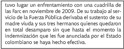 Los casos que a continuación se enuncian, abordan los acontecimientos en que se es víctima bien por judicialización equívoca o bien por muerte en combate y/o secuelas que dejan lisiado al uniformado o en estado de desamparo tanto a él como a su familia. El objeto es enunciar los casos para posteriormente retomarlos en la sección 2 con miras a establecer un marco analítico que derive claras reflexiones como aporte a futuro diseño de propuestas de revisión en que se incorporen componentes ontológicos en la caracterización de la Fuerza Pública como víctima en el conflicto armado.
