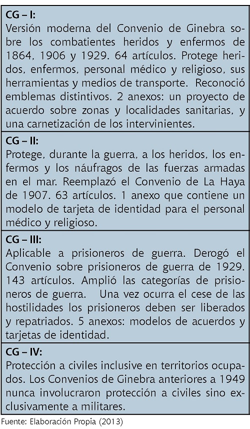 Son tratados internacionales resultado de la crueldad de la Guerra y cuyo espíritu fundamental buscó limitar el sufrimiento en cualquier tipo de enfrentamiento armado que ocurra en los territorios de los Estados miembros.